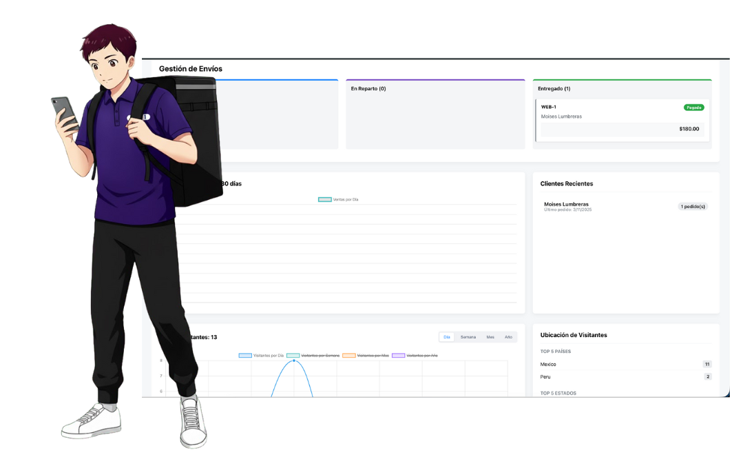 Gestiona tus propias zonas de envio, personaliza los costos de envio segun la zona y asigna usuarios como repartidores para programar los envios